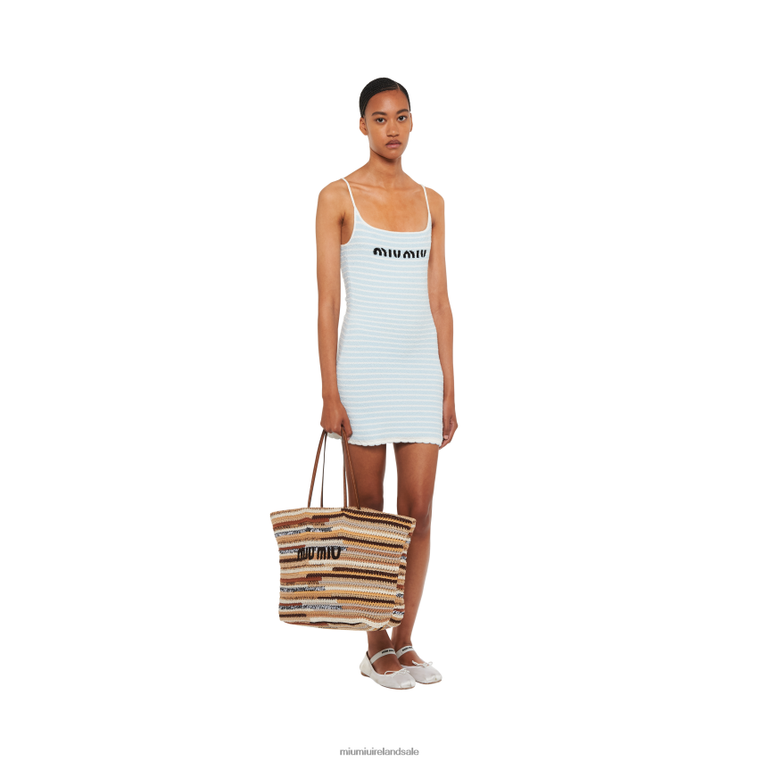 A vibrant color-block pattern animates this crochet tote bag. Retro references and sophisticated workmanship distinguish this accessory embellished with the iconic embroidered Miu Miu logo.