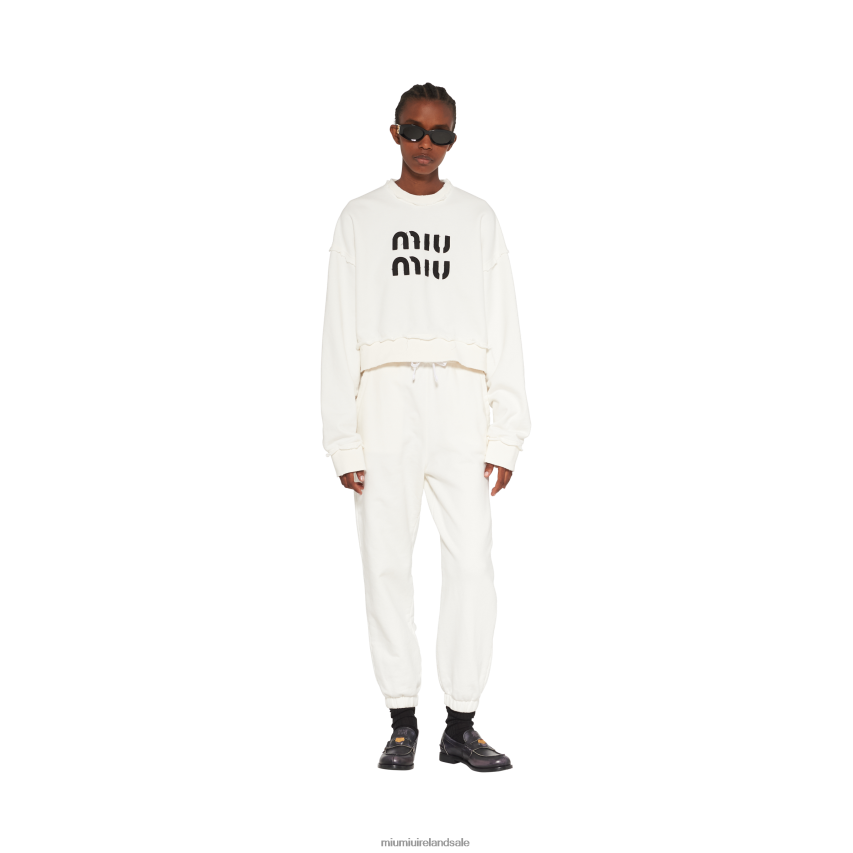 IE Miu MiuReady To Wear Embroidered Cotton Sweatshirt White XJN62J702